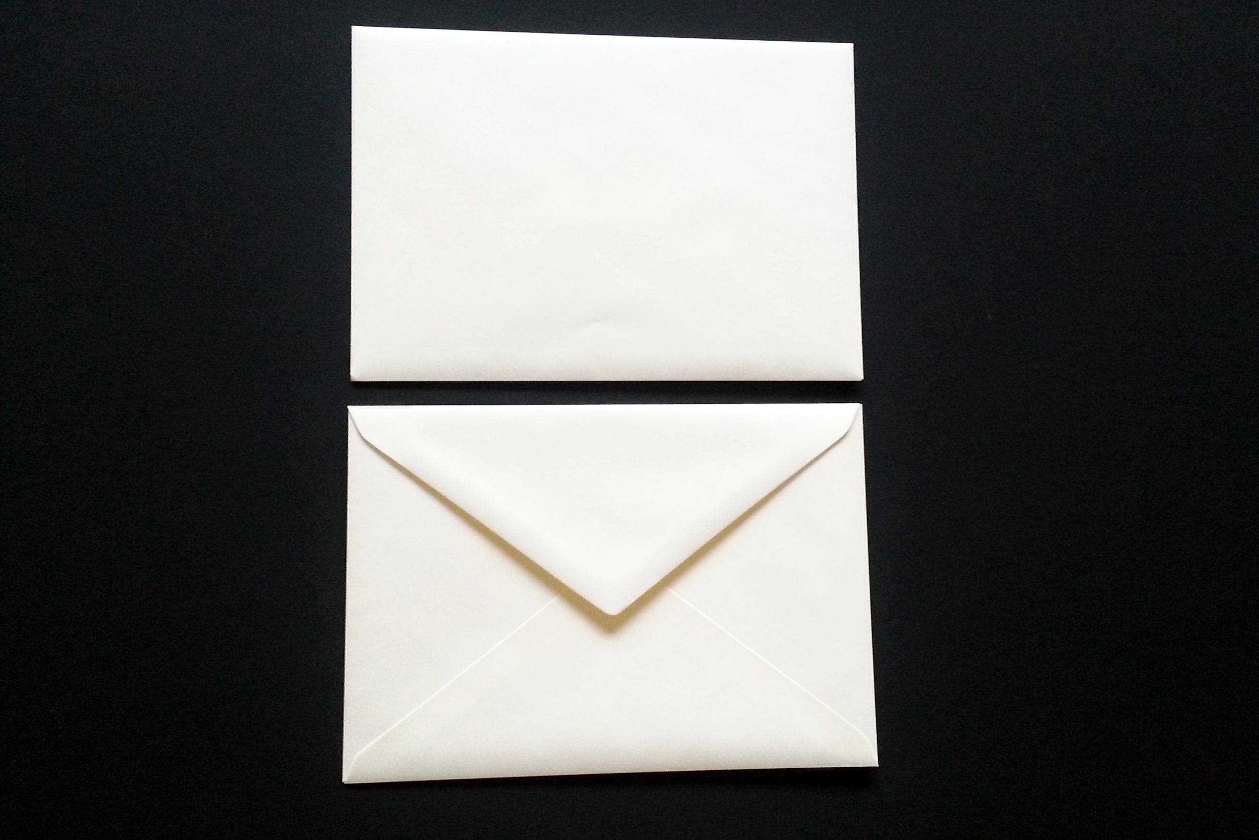 Sobre de papel registro (ligeramente suave) tamaño 162×229 color ahuesado engomado de 120 gr con solapa de pico ideal para bodas.